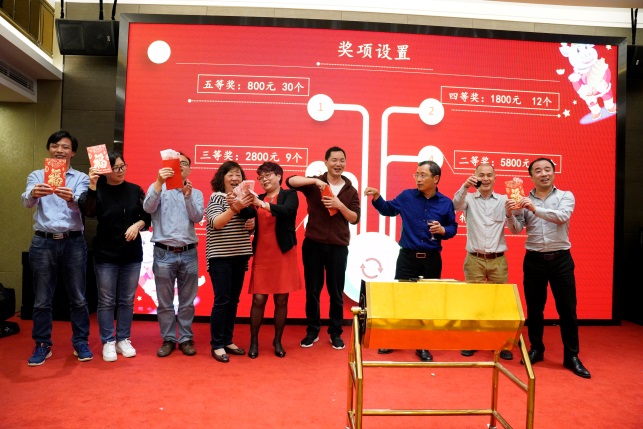 三等獎的抽獎開始了,技術(shù)部孔總、品控部余總、生產(chǎn)部鄒總分別抽取9名三等獎獲獎?wù)卟⑦M(jìn)行了頒獎。